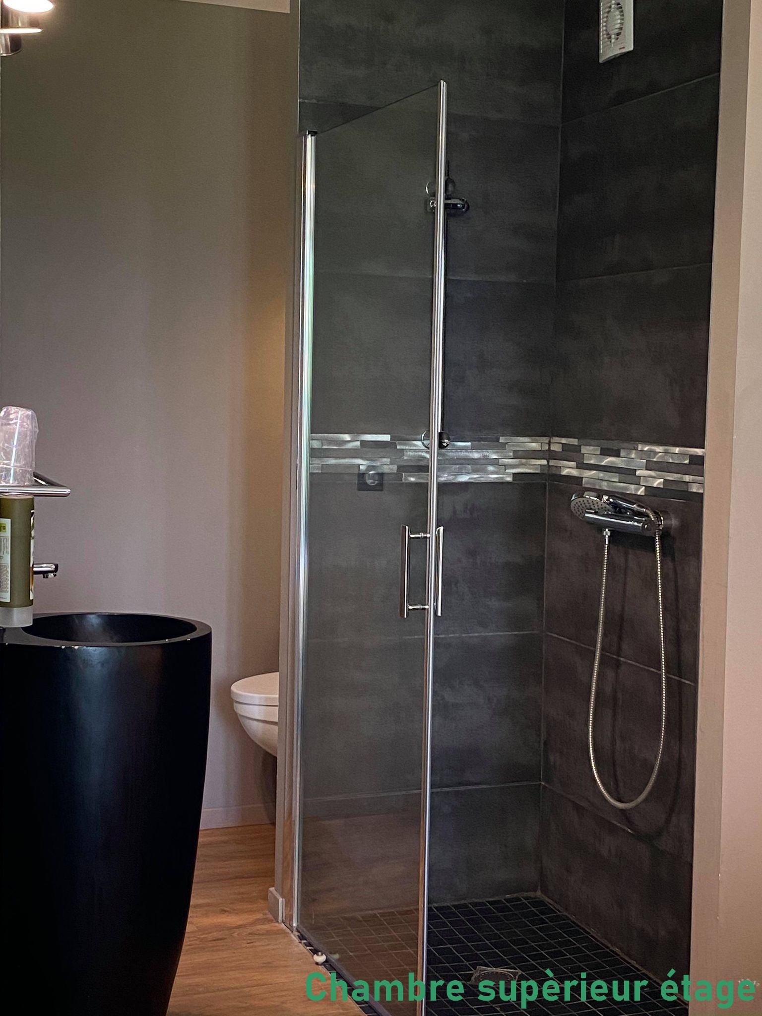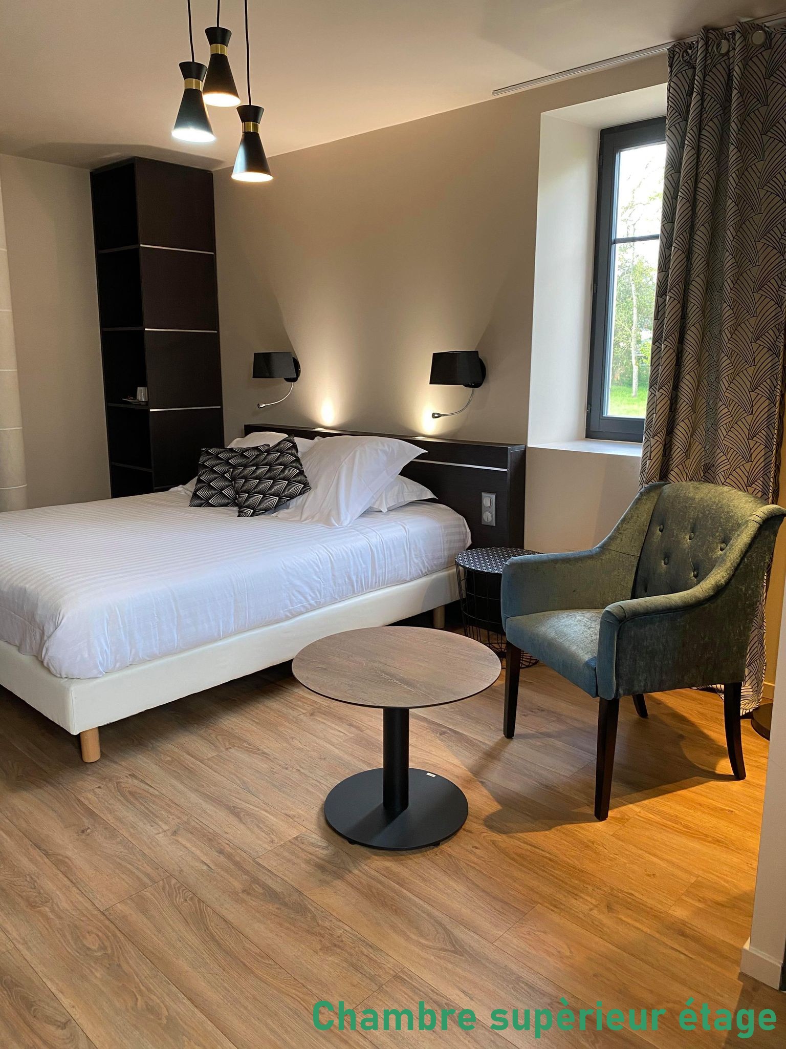 Our superior rooms with terrace, overlooking the hotel garden, have a bedroom (with a double bed), a living room, a bathroom (with separate WC) on the ground floor and two double beds upstairs.